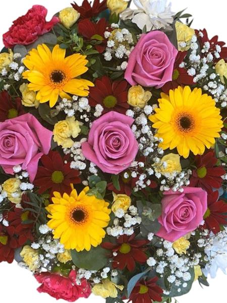 A posy pad up from pretty pinks, bright yellows and rich reds